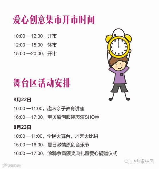 8月22日-23日,鼎峰集团约定你们在鼎峰尚境一起嗨翻全场。这里聚集最牛的创意达人,这里重现消失的传统工艺,这里可以释放你们的童真,为爱心公益捐赠,让我们一起摇摆吧!
