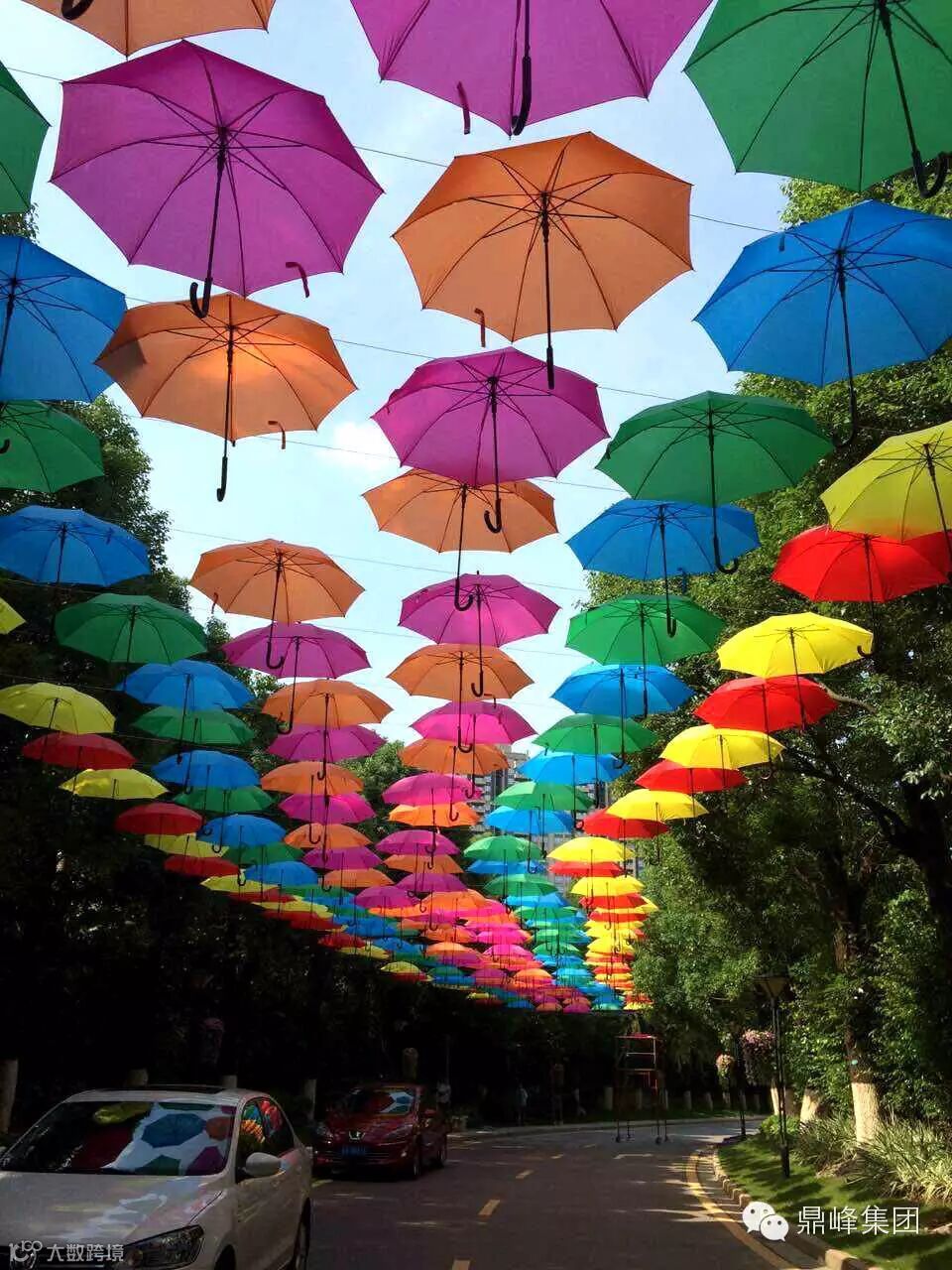 东莞首条彩虹大道惊艳亮相。“千伞彩虹天幕”,铺满香樟大道的天空,色彩鲜艳,温馨浪漫。这是来自鼎峰最特别的彩虹之旅;