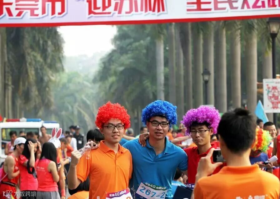 为何叫炫跑呢?除了满眼炫炫的颜色之外,最炫的地方还在于三人一组,必须要三个人全部冲过终点线才能有成绩,并且以队里第三个冲过终点线的队友的成绩为准!
