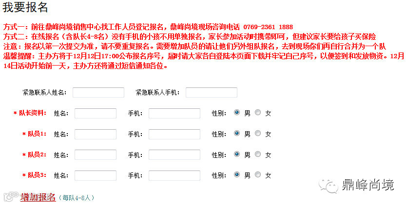 2、组队报名:每个队需提供一个紧急联系人的姓名及电话(非本次参加活动的人员);