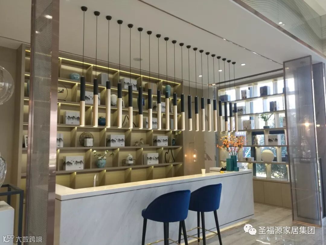 水吧区的木质装饰柜搭配艺术品,让空间清雅静谧。