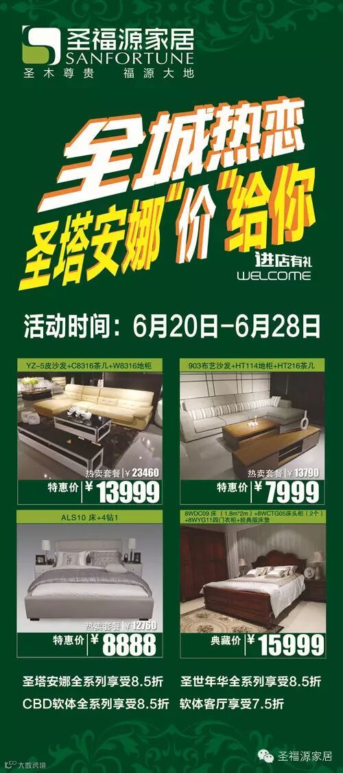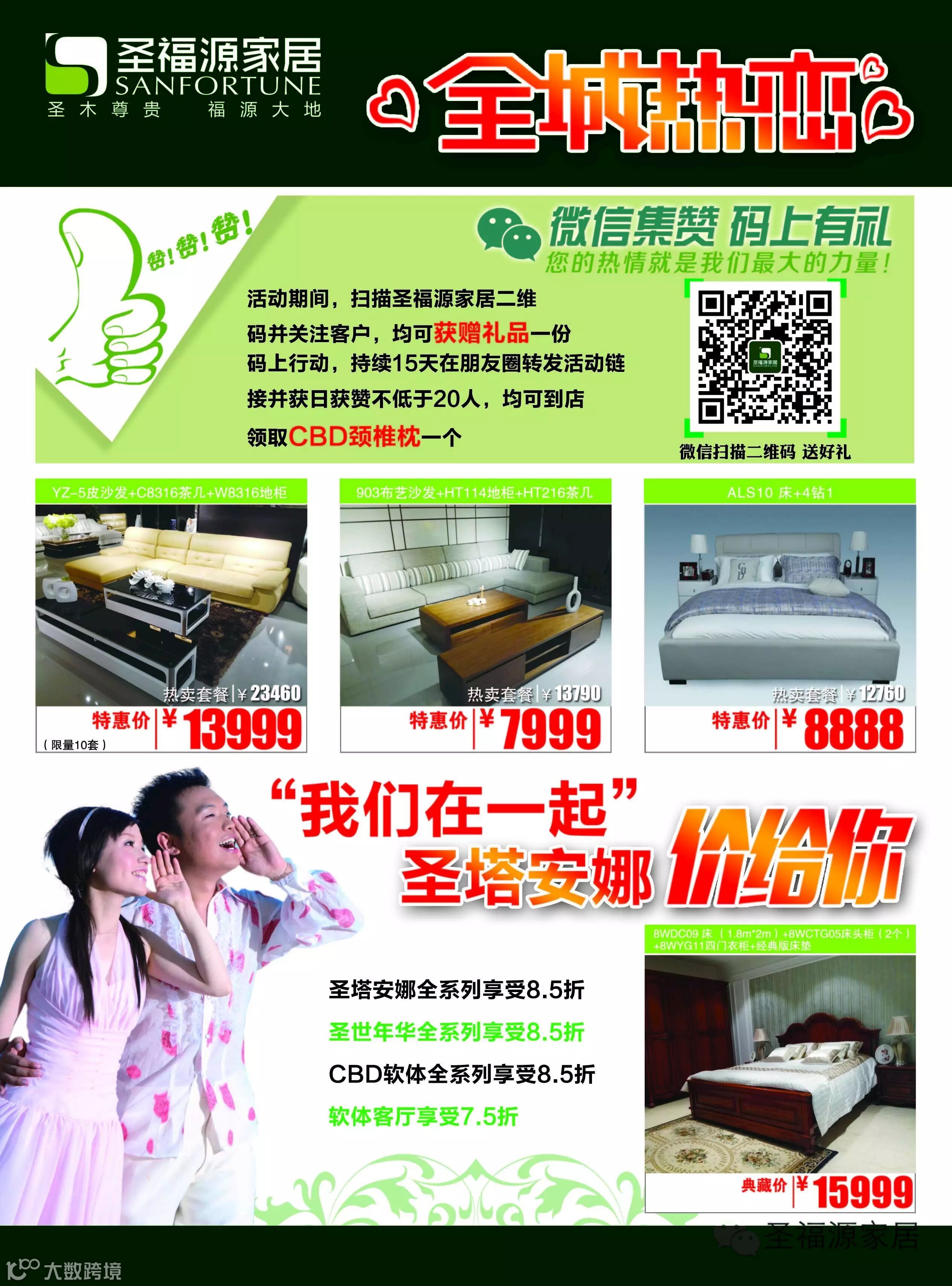 活动期间,进店客户扫描圣福源家居二维码并关注客户,均可获赠小礼品一份