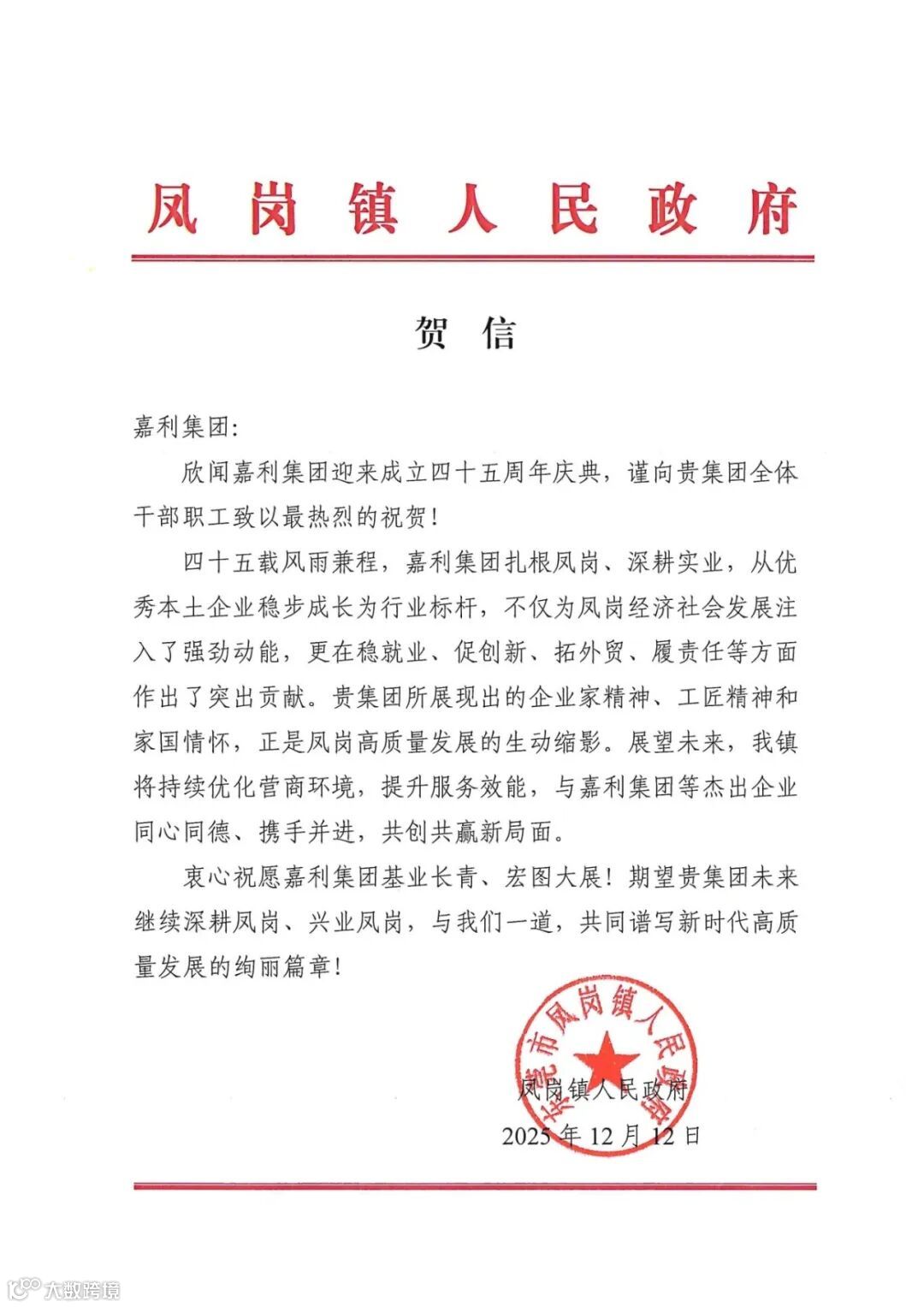 一纸贺信,情深意重