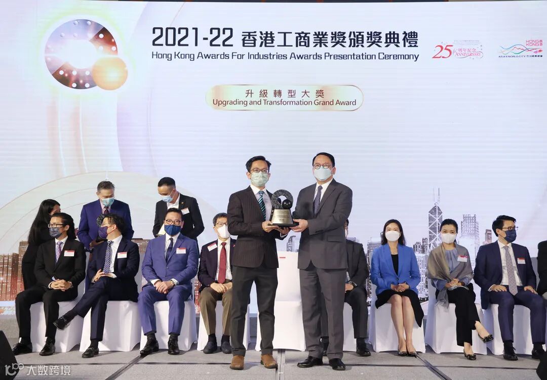 2022年11月28日,2021-22香港工商业奖颁奖典礼在香港科学园举行。集团荣获升级转型组别最高荣誉“2021-22香港工商业奖:升级转型大奖”。颁奖典礼上,首席财务官黄浩钧先生代表集团获香港特别行政区政府政务司司长陈国基先生颁奖。