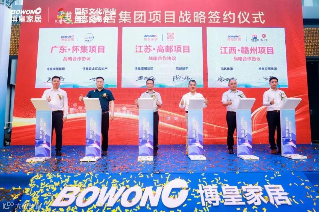 来自全球家居行业的目光将齐齐聚焦于第十九届文博会博瑞徕国际家居文创园分会场,共同一睹博皇家居集团高速发展新机遇,博皇家居集团正式启动联合广东·怀集,江苏·高邮,江西·赣州大型项目的战略签约仪式,这标志这博皇家居集团正式迈入新的征程。