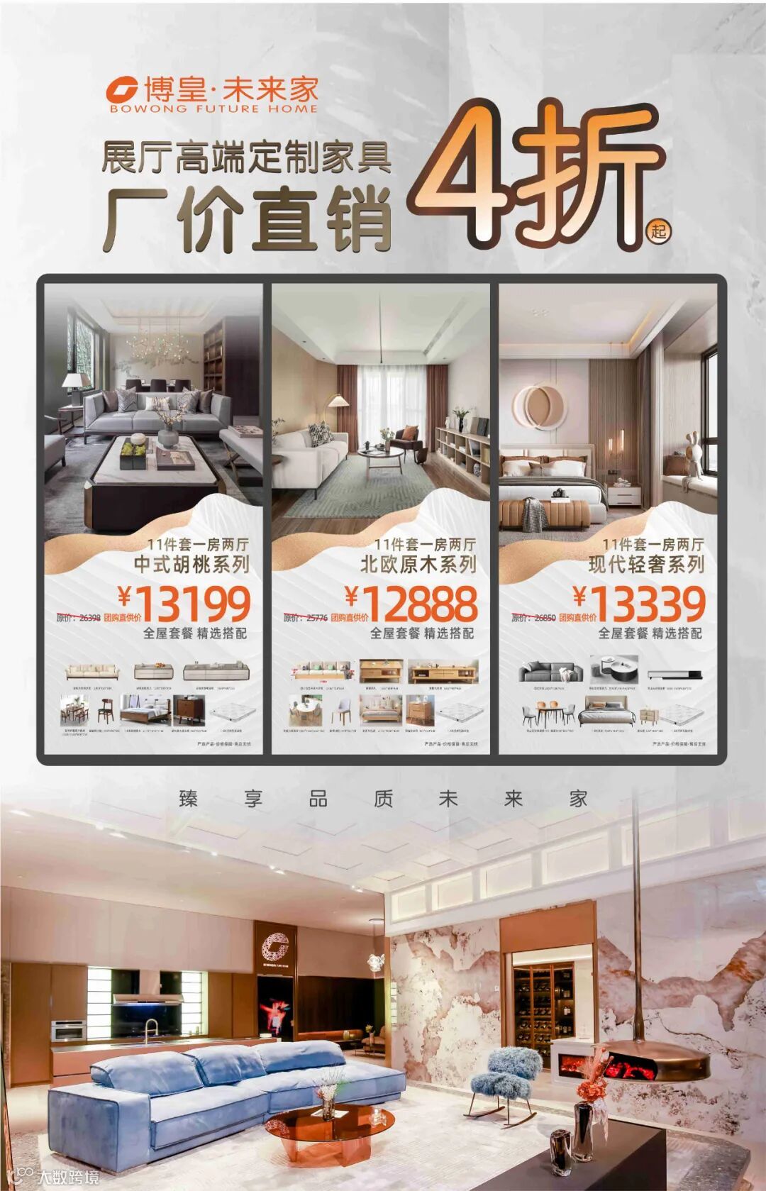 博皇旗下自营品牌美家配整装是集整装、定制、家私、家电、智能的一站式整装设计,拥有30余年筑家经验,为刚需客户提供一站式的整装服务。
