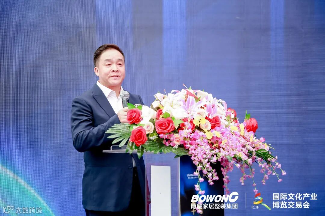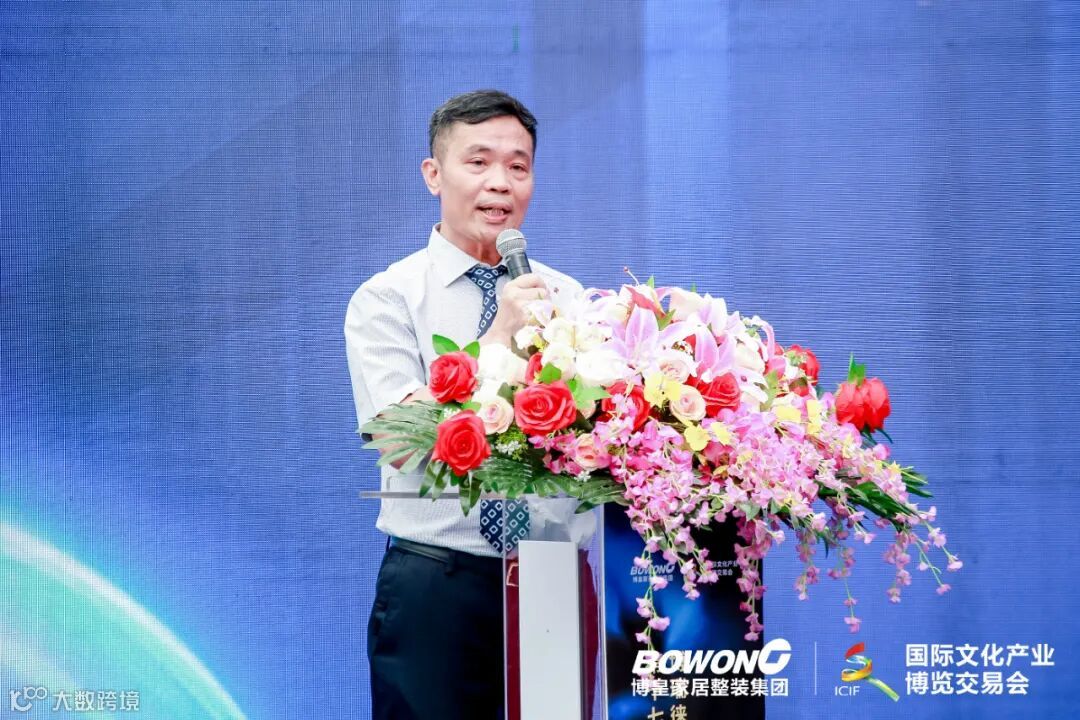 博皇集团董事长黄惠强先生代表博皇集团对今天莅临会场的领导、嘉宾们表示热烈的欢迎和衷心的感谢!他还提到博皇集团三十年来,深耕家居产业,在创新中发展,不断延伸产业链,从家居建材连锁卖场,到装饰整装集采平台——博皇未来家、美家配,以及家居主题酒店、软装设计培训商学院等,今日的博瑞徕国际家居文创园是是集“设计、研发、展示、体验、直销”为一体的全新一代家居主题创意设计主题园区,致力于打造“家居+科技”、“家居+文化”、“家居+互联网”商业新模式。这次我们举办文博会分会场活动,汇聚了国内家居、科技、文化、设计、投资界大咖,聚焦大湾区、产融结合、共谋产业发展,传承中国文化,缔造美好生活家。