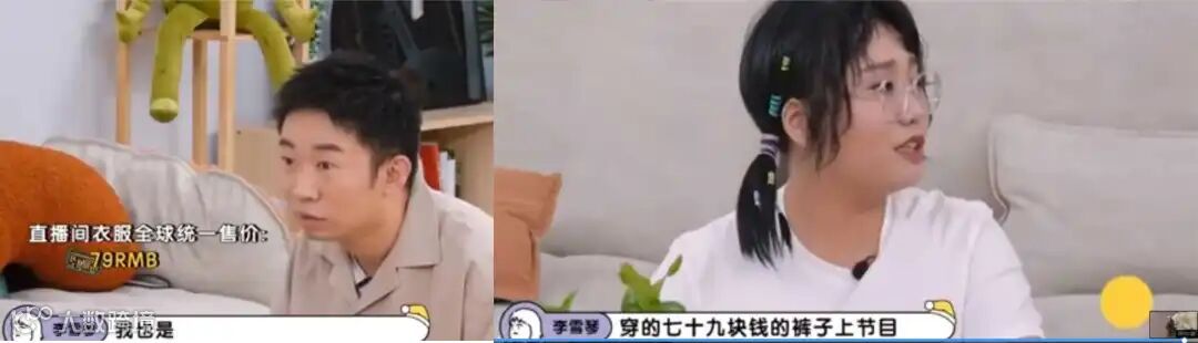在综艺《毛雪汪》中杨迪、李雪琴交流穿79元衣服上节目