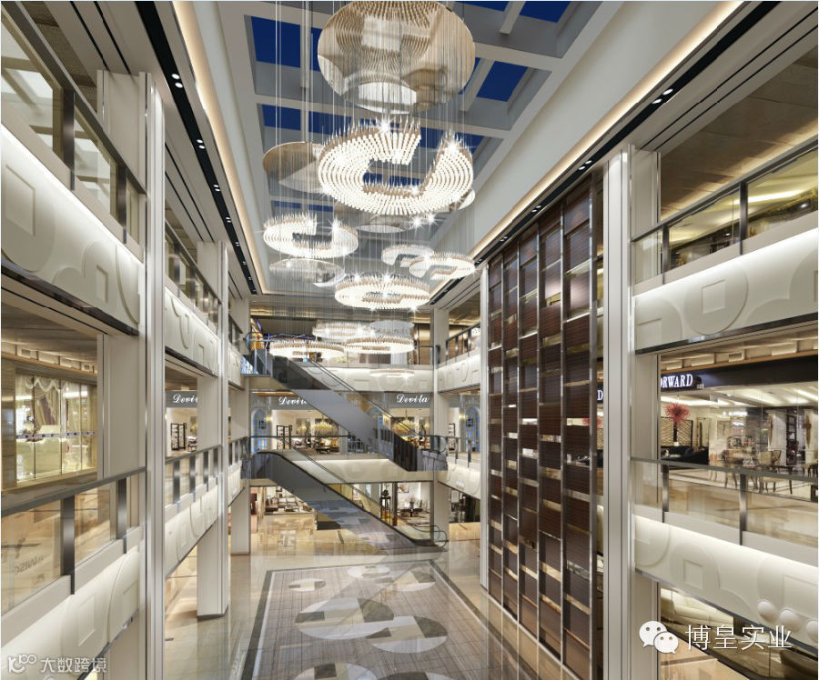 郴州博皇国际家居建材采购中心按照博皇最新第九代旗舰店概念设计,营业面积过12万平方,运用国际领先的设计理念,前沿的空间搭配,以人性化的一站式购物体验,结合现代消费观念,通过名师设计。打造出全新的商业规划,演绎着完美的家居环境氛围。