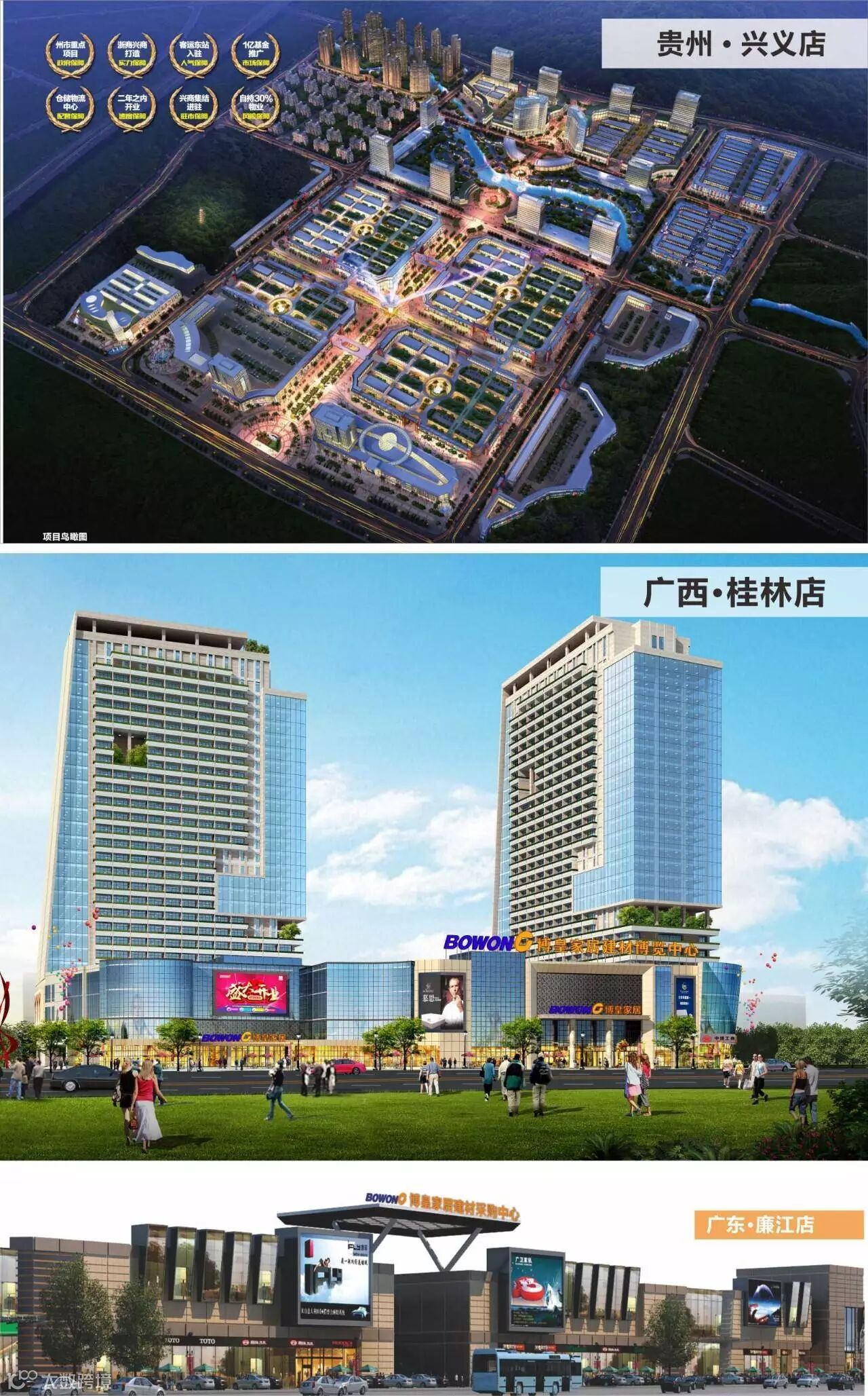 贵州兴义,广西桂林,广东廉江项目均位处核心商圈,坐拥财富旺地,投资潜力巨大,为商业机遇缔造了无限升值空间!大平台成就大商机,项目启动在即,只等你来!