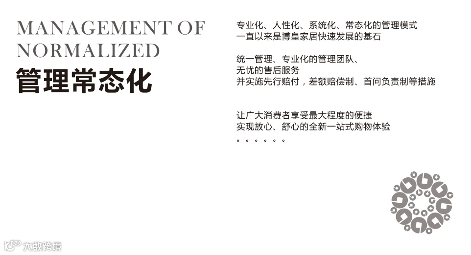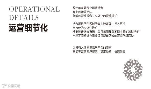 厚积薄发,强强联合,博皇家居集团携手千家一线家居建材品牌合作共赢,开拓未来。针对项目推广和打造,博皇家居集团有着二十几年的行业经验,致力于打造专业的,具有竞争力的,可持续创富的家居建材卖场。