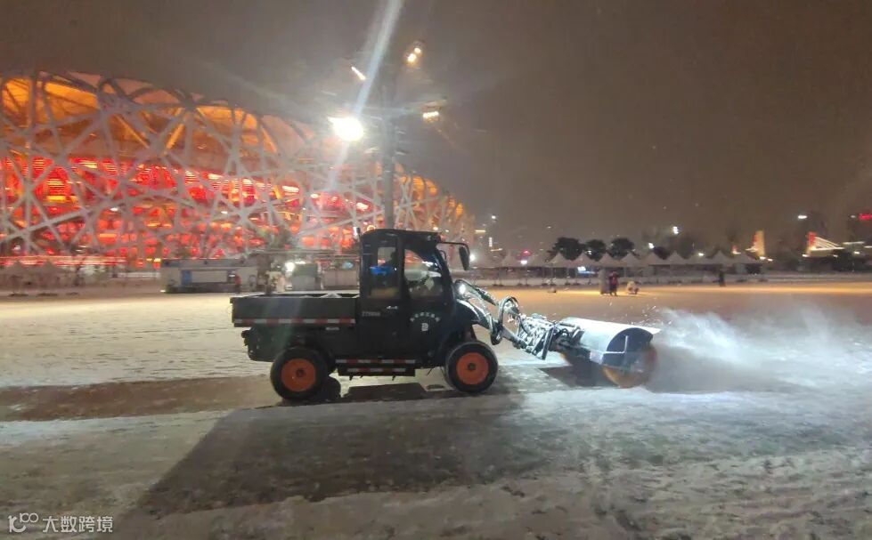 北京环卫集团城市机扫公司在奥林匹克公园中心区进行除雪作业。(图/马腾飞)