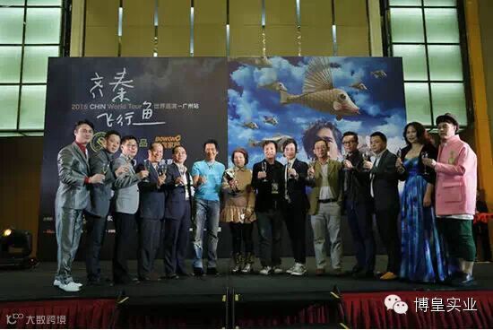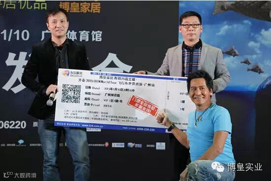 之后联合主办方广东省家具商会会长何志雄先生、赞助方博皇家居常务副总杨冠平先生分别向齐秦先生赠送珍贵礼物,并彼此祝福。激动人心的时刻到了,由主办方执行会长、粤居优品总指挥蒋德辉先生揭晓门票开售成果,万余门票售罄。齐秦先生激动的下蹲挥笔签名,并竖起大拇指示赞。至此,现场达到高潮,贵宾纷纷登台举起酒杯庆贺。齐秦先生一口喝完香槟,想必1月10日广州体育馆专场演唱会将倾力演绎,共创辉煌。