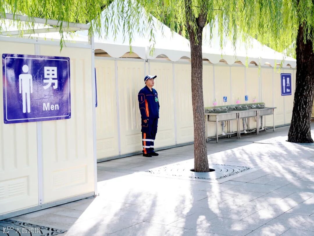 北京机扫公司在天安门地区及周边设置临时厕所共17台座,包括汽车厕所、单体厕所、拖挂厕所、帐篷厕所等多种类临时厕所。每处点位安排专人值守,定时开展清洁,配备洗手液、卫生纸等物资,确保如厕环境整洁、舒适、方便。