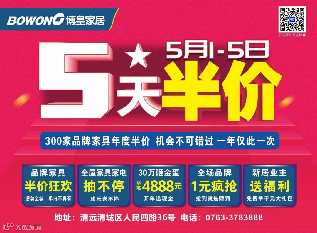 5月1-5日,清远博皇家居五天半价活动现场人山人海,围得水泄不通,只为中得电器和超级大奖:4888元!火爆程度堪比演唱会现场!