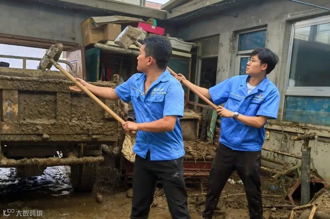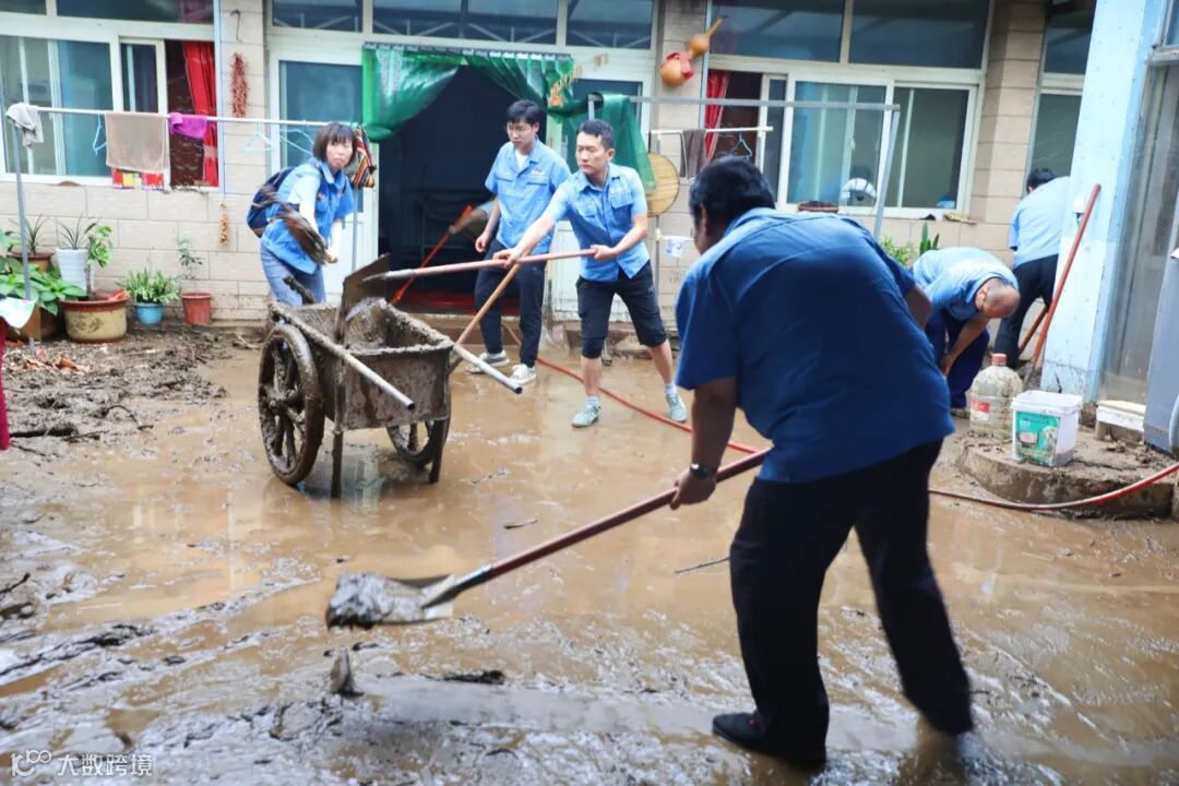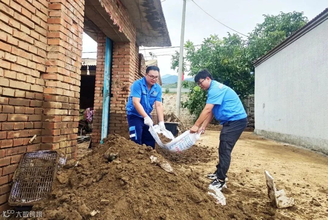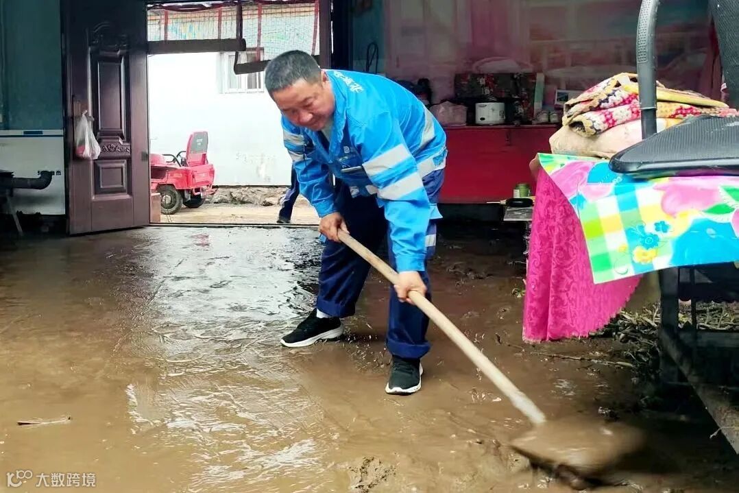 这支突击队由党员干部带头,配备高压水车与专业洗地车,开展精细化环境恢复工作。到达受灾严重的关上村后,突击队分为5组,在村委会工作人员的引导下,深入村民家中。