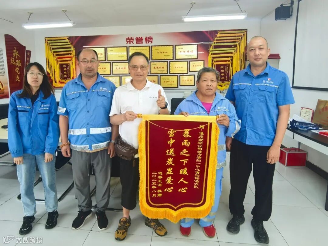 近日,一位老人来到通州公司城市清扫一中心,为保洁员胡秋玲送上了一面锦旗,感谢她帮助老人避雨并赠送其雨伞。