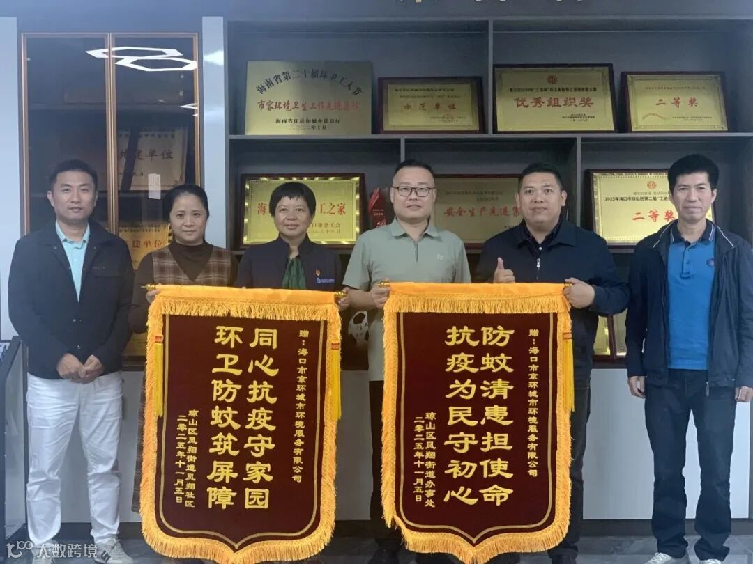 凤翔街道办事处、凤翔社区向海口京环公司送来锦旗和感谢信,对全体环卫人员在基孔肯雅热疫情防控期间的突出贡献致以诚挚的感谢。
