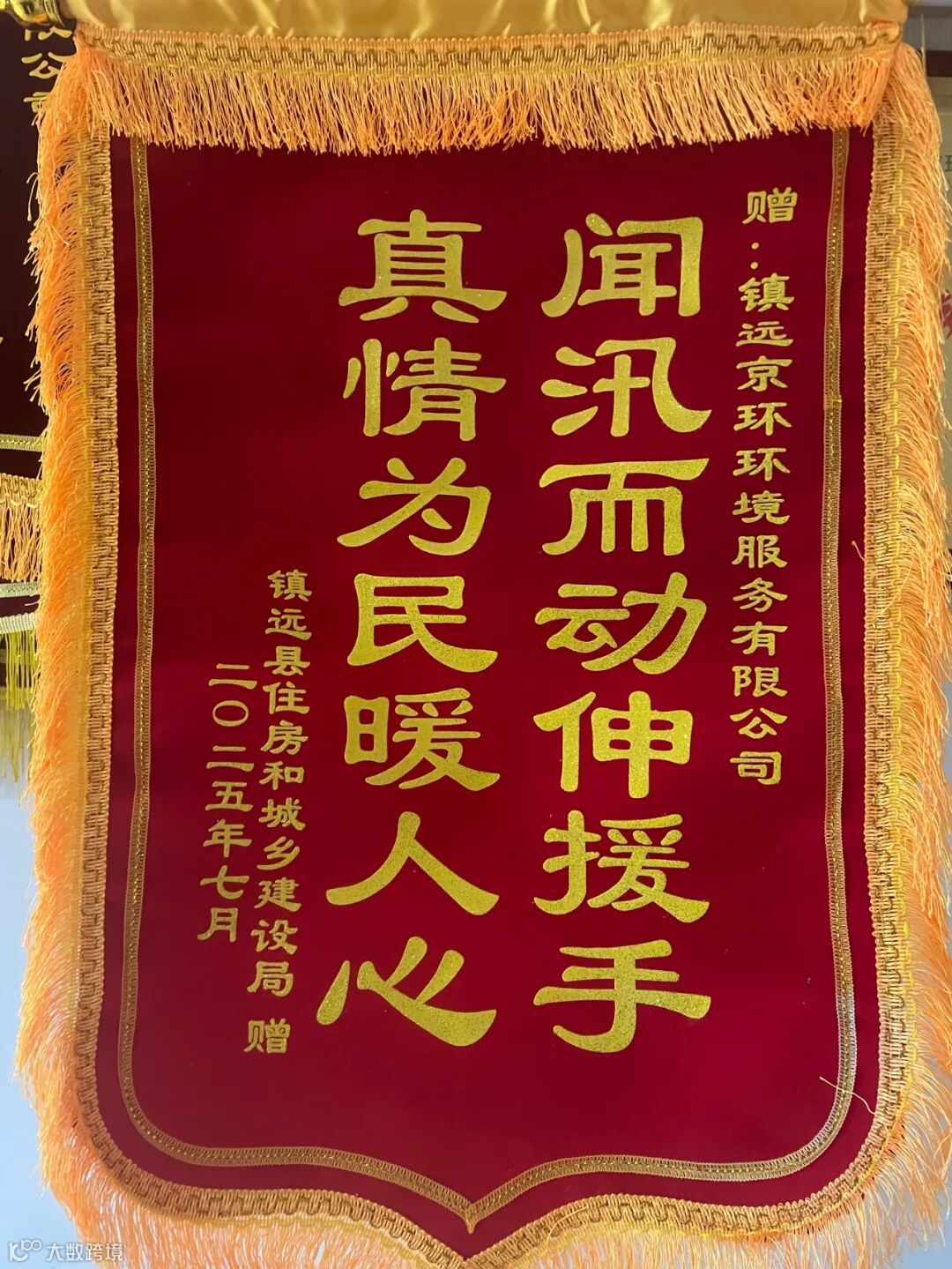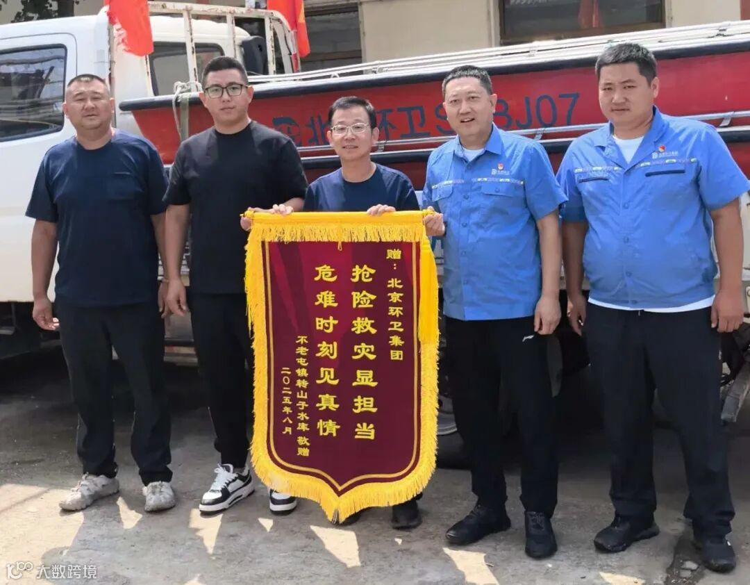 中共北京市密云区委、北京市密云区人民政府向北京环卫集团送来了感谢信,密云区不老屯镇转山子水库赠送北京环卫集团一面锦旗。