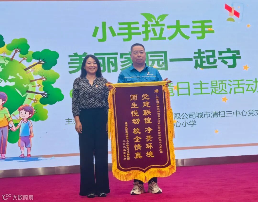 张家湾镇中心小学党总支部赠送了通州公司城市清扫三中心党支部一面锦旗。