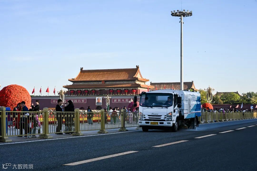 △“五一”假期,游客量陡增,北京机扫公司广大职工奔忙在天安门广场的各个角落,高标准、高质量、高效率做好环卫保障工作,用心守护这个全国人民向往的地方。(丁丹摄)