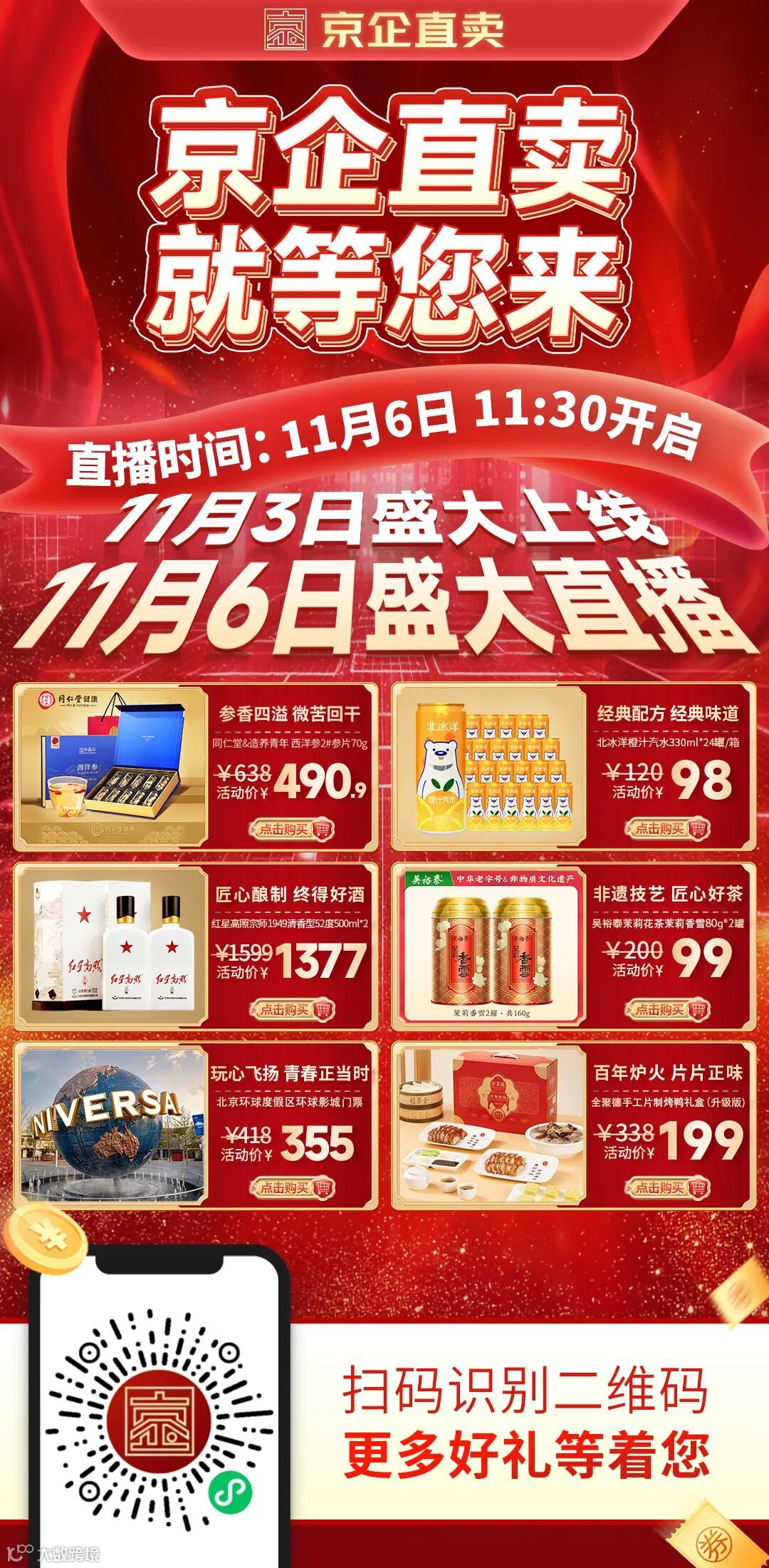 国企品质保证、更多实惠让利、更优贴心服务的“京企直卖”线上平台11月3日23时盛大上线。