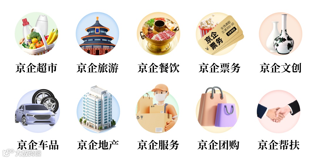 “京企直卖”线上平台涵盖了京企超市、京企旅游、京企餐饮、京企票务、京企文创、京企车品、京企地产、京企服务、京企团购、京企帮扶等十大板块,从田间到餐桌,从文创到文旅,从汽车到房子,从商品到服务,能够满足消费者多元需求,具备省时、省力、省心的一站式购物服务特色。
