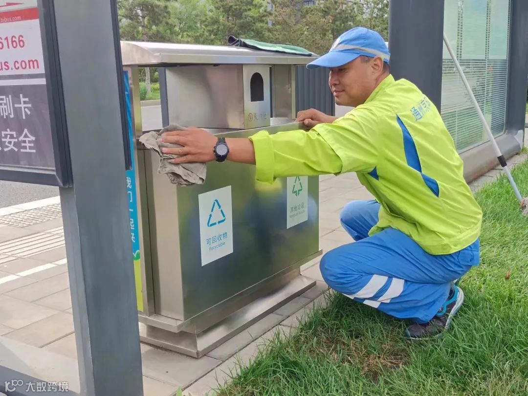 除了捡拾垃圾,他还得及时清理路边的垃圾箱、电线杆和公交站牌。“你别看现在干净,夜里土方车冒出来,早上一摸就是一层土。”王洪和说。