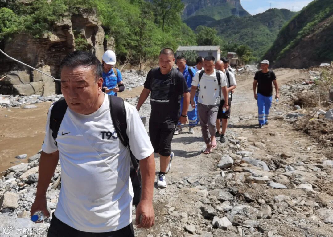 通讯问题解决了,可山上储备的7天生活物资快用完了,缺水严重。房山公司召开会议,组建突击队上山探路、送物资。55岁的副总经理曹志怀主动请缨担任突击队长,“我是十渡人,从小就爬山,年轻时也经历过洪涝灾害,我去吧。”大家都说让更年轻的同志上去,曹志怀却始终坚持,说自己经验丰富,最终他和7名有登山经验的年轻人组成突击队,于8月5日中午出发。