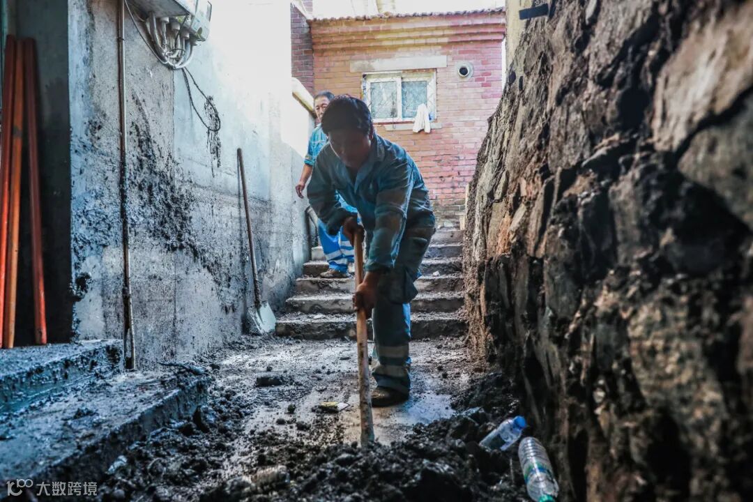 “这些淤泥又厚又黏,比清理垃圾难太多了。”有多年环卫保洁工作经验的环卫职工苏里在看到眼前厚厚的淤泥时,也还是会犯怵。“村里路太窄,很多地方都没办法使用机械,只能靠人力。”在大安山矿社区的一户困难群众家里,他正和同事们用铲子一点一点将堆积的淤泥铲到手推车上,再一车一车往外运。这已经是8月16日以来,他们清理的第3户困难人家,院子里的淤泥足有1米深,所有的家具都被掩埋。在整个清理过程中,苏里还仔细地观察着混杂在其中的物品,并小心地捡拾出来,再规整地放在一边。小到锅碗瓢盆,大到家具电器,他的每一铲都那么小心翼翼。“农村人挣点钱不容易,能帮点就帮点……”苏里说。