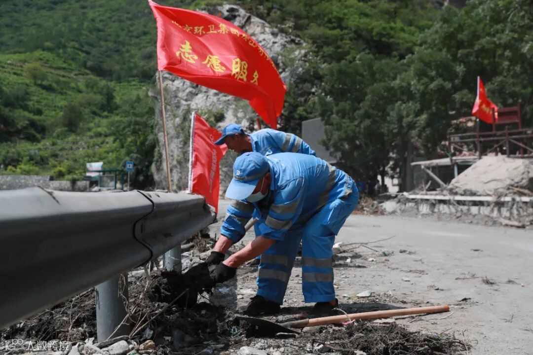 “我们是在和时间赛跑,早点把环境卫生清理出来,当地的居民就能早点回家。”曹志怀说。在认真踏勘现场,确定人工与机械配合的工作思路后,北京环卫集团出动各类作业人员200余人、作业车辆30台深入大安山乡进行协同作战。在大安山乡的道路两旁,堆积着许多杂物,机械无法处理,大家就利用铁锹一点一点清理,有的缠绕在护栏上的垃圾就直接用手去清理,很多职工的手上都留下了被树枝划破的伤口。截至8月18日中午12点,集团已完成清理道路河沟面积约197万平方米,清理杂物、淤泥、石头约12500立方米。