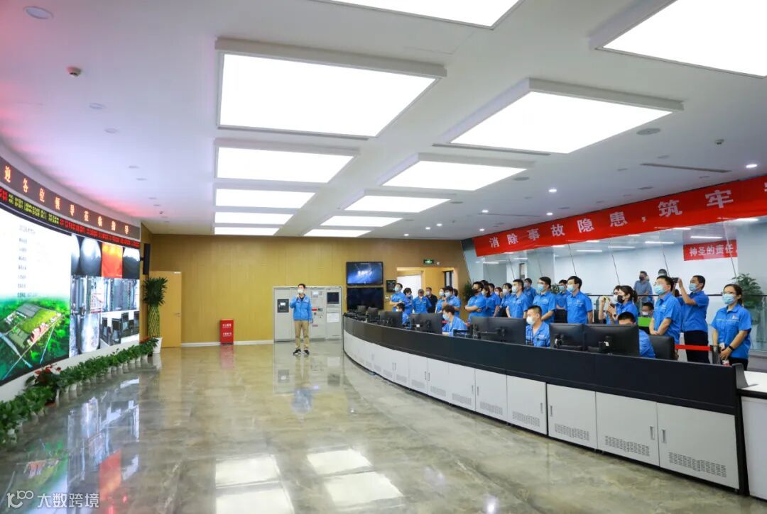 跟随讲解员的脚步,参观人员首先走进阿苏卫焚烧厂中控室。在这里,大家详细了解阿苏卫循环经济园区的运营情况,并对照LED屏幕显示的实时更新内容,听取了讲解员关于炉膛温度、烟气排放指标等情况的介绍。