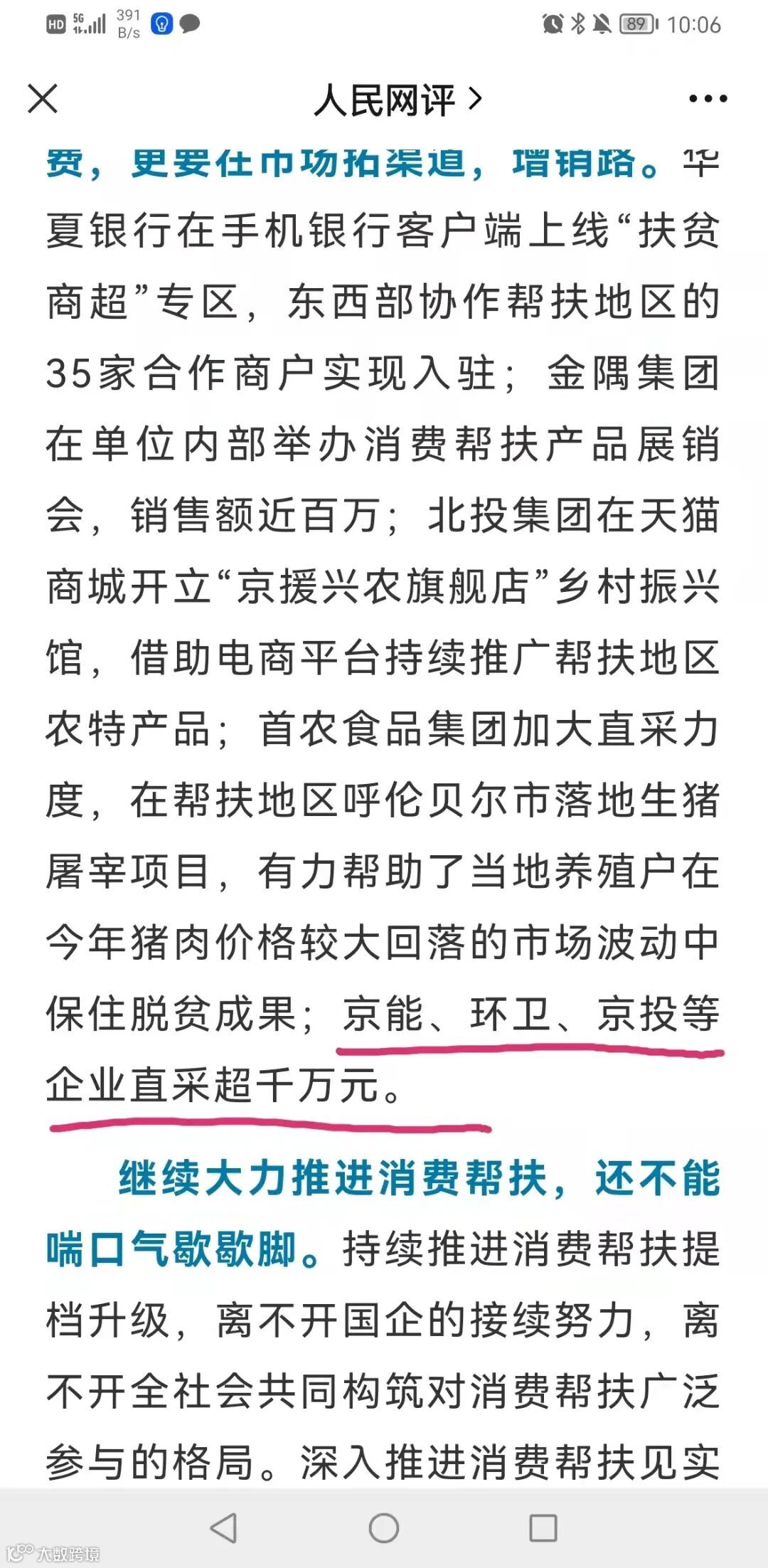 消费帮扶,一头连着田间地头,一头连着百姓餐桌。每份帮扶产品都可能系着一个乡村振兴的产业,也寄托了很多脱贫群众创业致富的梦想。很多脱贫产业刚刚起步,还处于弱小阶段,品牌力度也不够,唯有通过消费帮扶才能给产业前期发展赢得资金和时间,进一步树立产品的认知度和品牌力。今年前10个月,北京市国资委统筹协调43家北京市管国企,继续依托首都庞大的消费市场,以消费帮扶帮助对口帮扶地区巩固拓展脱贫攻坚成果、实现与乡村振兴的有效衔接。在内蒙古、新疆、青海、西藏等对口支援合作的四省区,北京市管国企采购消费帮扶产品12.46亿元,在已纳入京津冀协同发展的河北省张家口、承德、保定三市加大采买力度,消费帮扶金额达11.3亿元。推动消费帮扶提档升级,让当地产业和企业有更加良好的发展环境,以实绩实效助力帮扶地区的乡村振兴开局起步良好,实现互利共赢。