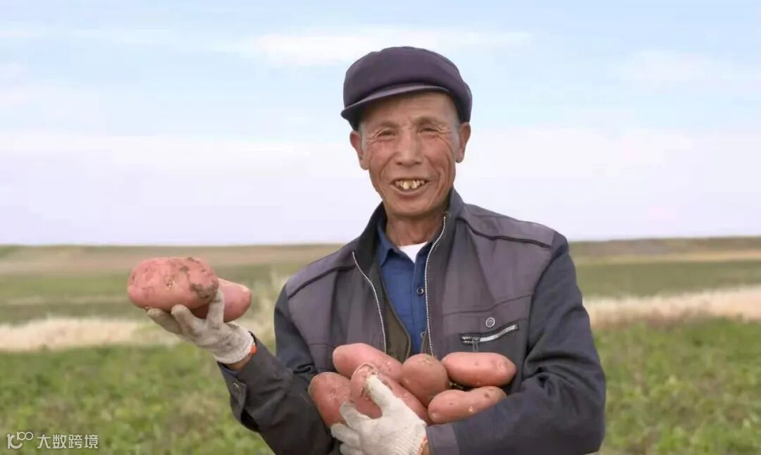商都县马铃薯种植基地农户手捧丰收的马铃薯