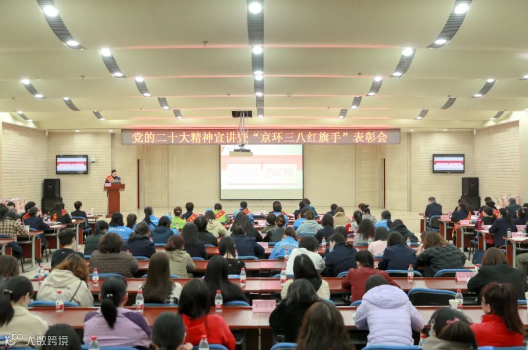 3月8日,集团在京环大厦一层报告厅举办党的二十大精神宣讲暨“京环三八红旗手”表彰会。集团党委书记、董事长高踪阳出席表彰会并讲话,集团党委副书记、董事、总经理何亮宣读表彰决定,集团党委副书记、董事、工会主席张玉梅主持会议。
