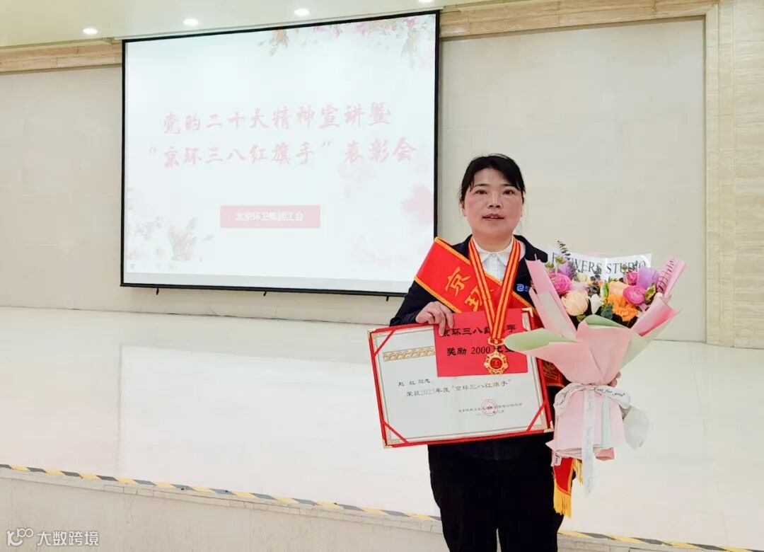 集团领导为“全国三八红旗手”“京环三八红旗手”颁奖。(左右滑动查看)