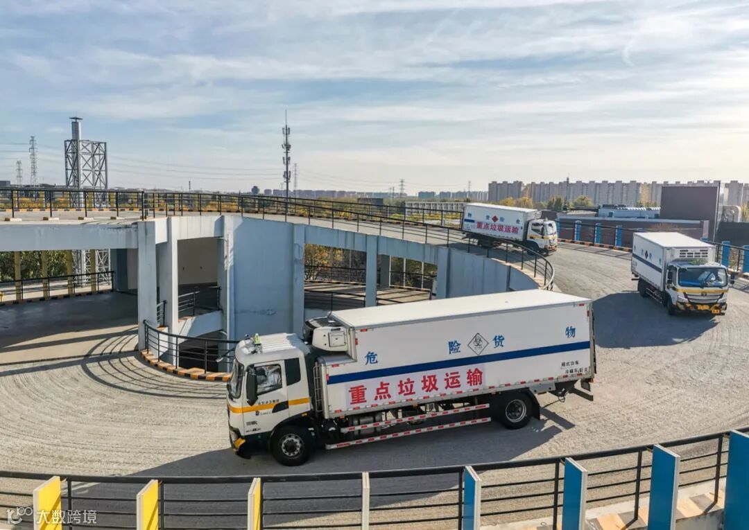 清运重点管控垃圾的作业车辆卸料后驶出厂区,同时进行全面消杀(南宫园区公司 摄)