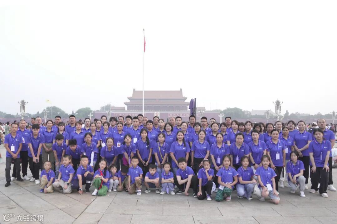 参加活动的京外职工共同观看天安门广场升旗仪式。