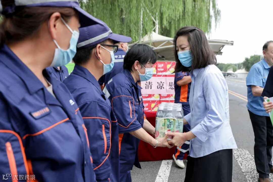 8月18日上午,为扎实推进党史学习教育“我为群众办实事”实践活动,北京市总工会党组成员、副主席赵丽君,服务工会主席孙宇、副主席张宇晶一行来到北京环卫集团机扫公司奥园环境服务中心,亲切慰问一线环卫职工,为职工送上清凉饮品。集团党委副书记张玉梅,集团总经理助理、北京机扫公司党委书记、董事长刘凯等陪同慰问。
