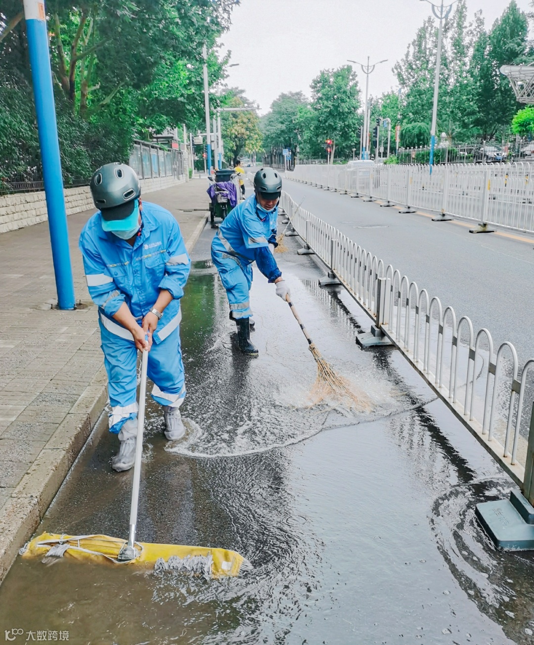 雨势转小后,北京机扫公司街巷运营中心立即投入到恢复作业中,擦拭垃圾箱外观、指示牌标识、公园长椅,清扫路面枯枝、落叶,努力做到雨后路面无积水、无污物。