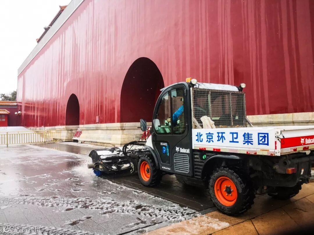 今天上午,集团旗下北京机扫公司“山猫”多功能除雪车在天安门城楼下清理积雪。