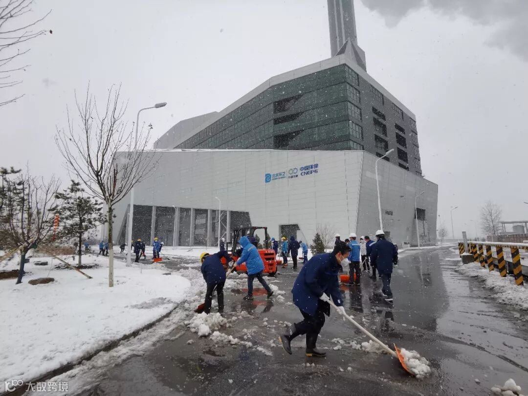 北京南宫生物质能源有限公司职工正在清理厂区内积雪。