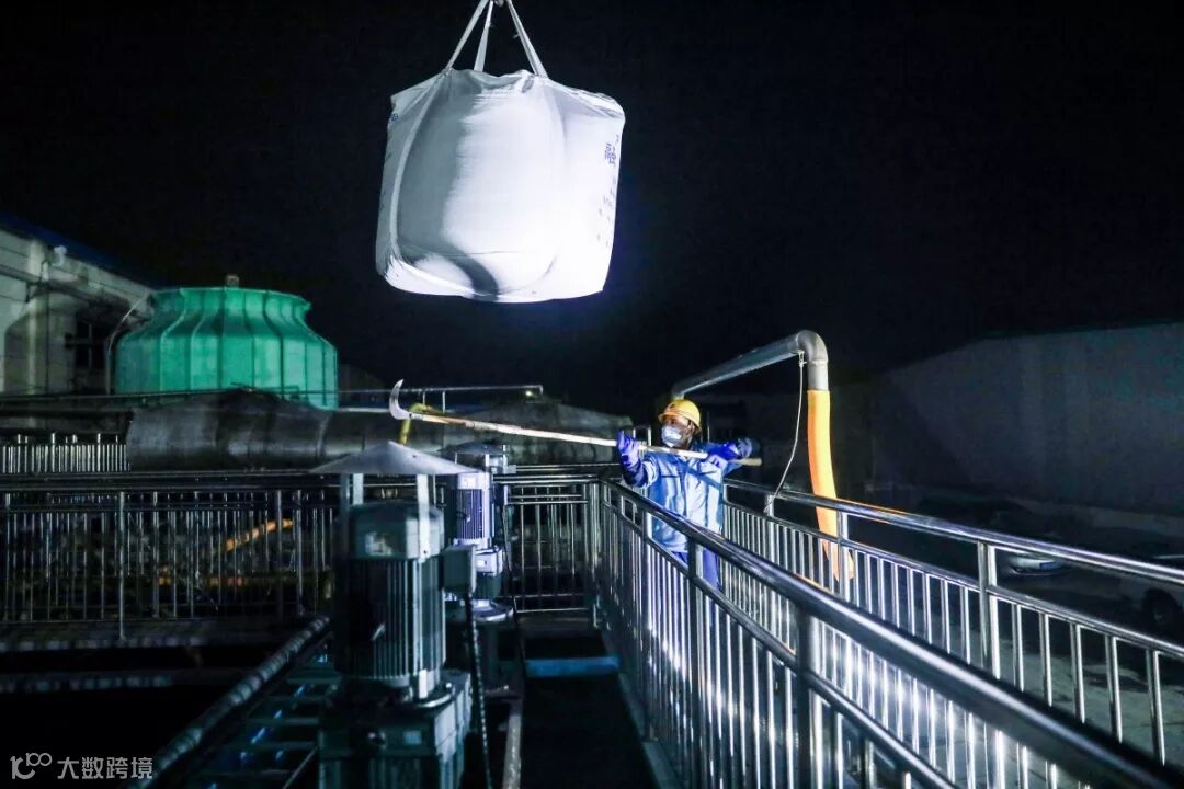 2月13日晚,京环绿谷公司职工在进行降雪前的准备工作,图为吊装融雪剂。