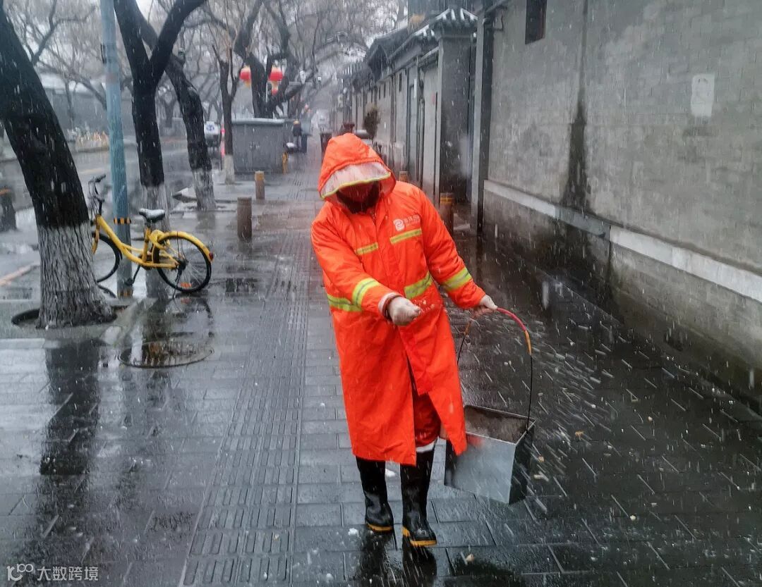 北京环卫集团旗下相关作业单位在严格落实疫情防控措施的前提下,全力做好除雪铲冰工作,确保市民安全出行。