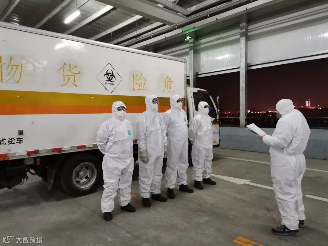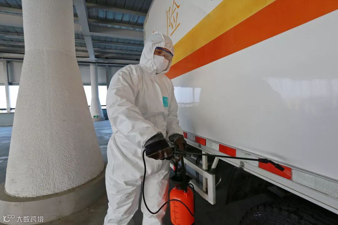 董金峰和医院负责收集医疗垃圾的工作人员做了交接,核实好箱数并签字后,配合押运员取出车上的消毒设备,对这20多个纸箱子进行消毒,然后同押运员一起把这20多个箱子搬到车里,这一个个的纸箱子里装的是患者用过的医疗废弃物、衣物、床单等,箱子的重量不等,有的轻些,有的则重些,穿着防护服的他们干起活来有些笨重,但却细心,搬完箱子,董金峰又对车厢、车内和车外以及车轮进行彻底消毒。作业完毕,对防护服进行消毒后,将防护服按要求脱下,扔进车厢同医疗废弃物一起去焚烧,此时董金峰已经是大汗淋漓。
