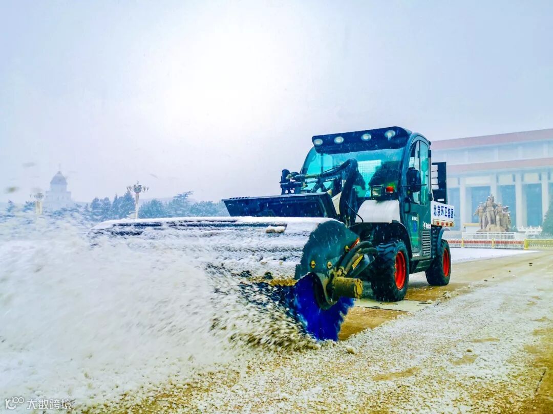 今天清晨,集团旗下北京机扫公司“山猫”多功能除雪车在天安门广场清理积雪
