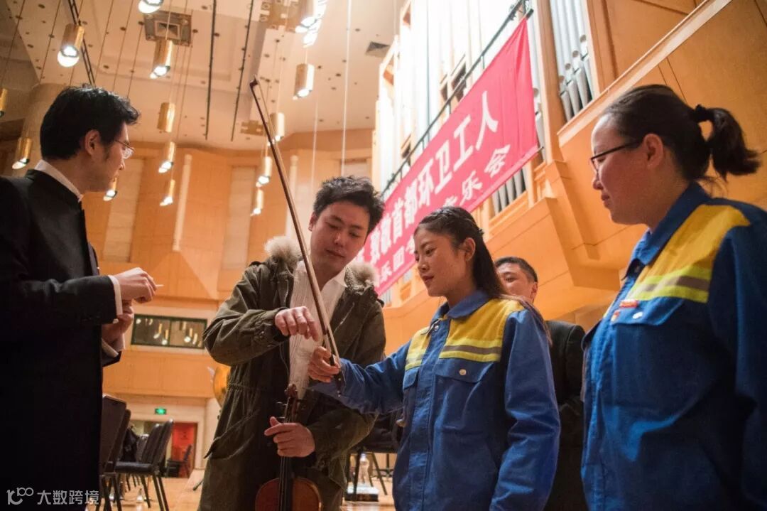 演出开始前,北京交响乐团的艺术家们专门为环卫工人们讲解、普及了交响乐知识。