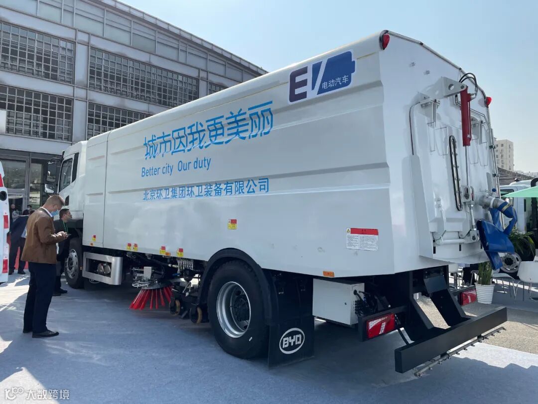 京环装备携自主研发的氢燃料电池环卫车辆及其他新能源产品亮相本次