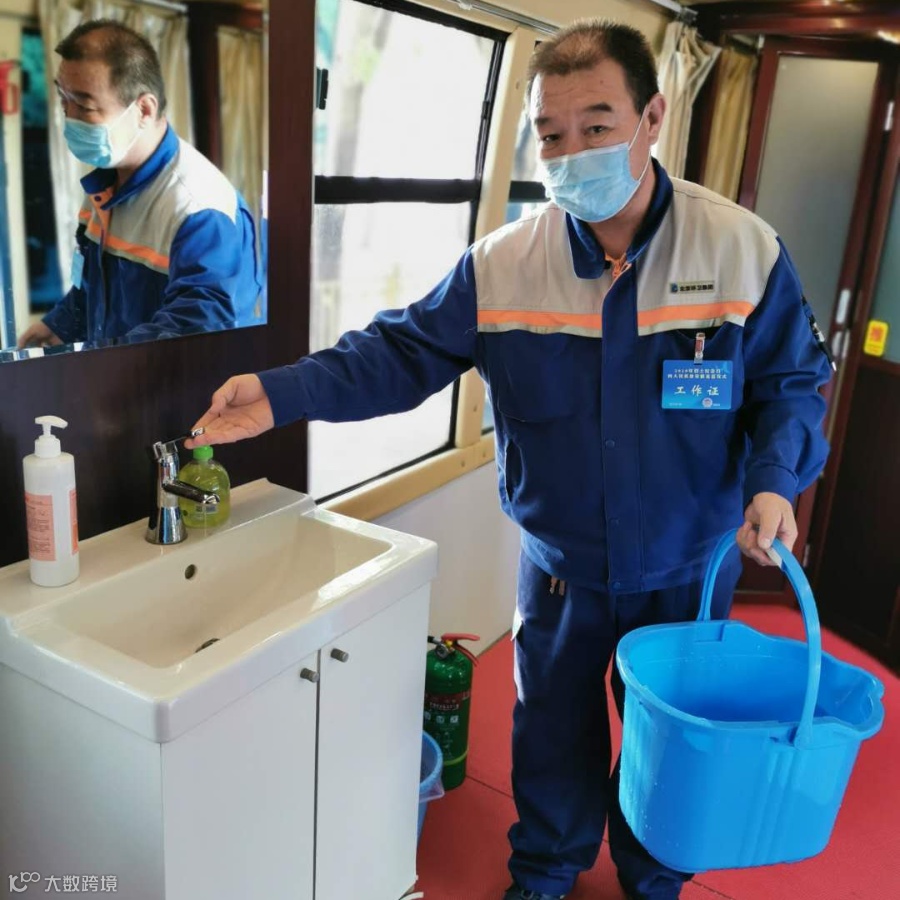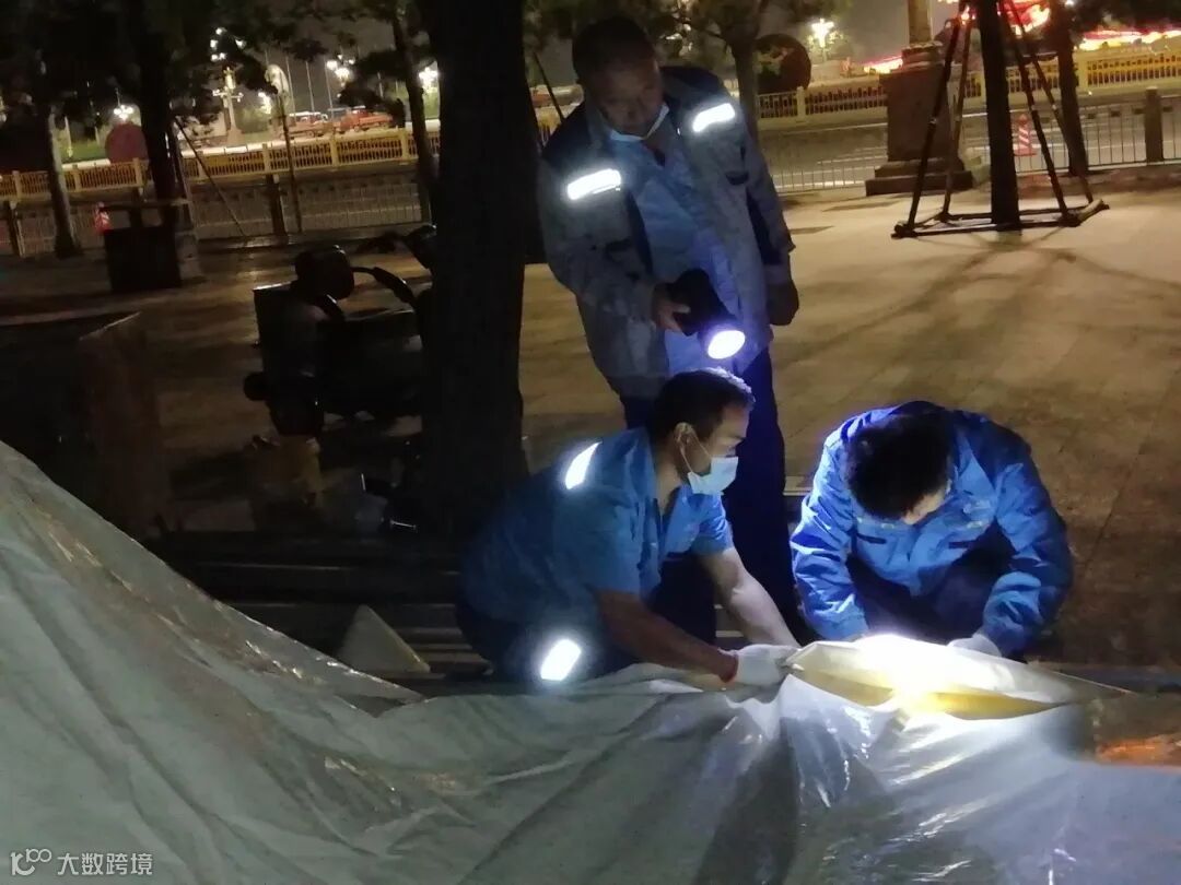 北京机扫公司装备服务中心时传祥班组连夜完成篷帐厕所的搭建及拖挂卫生间入位、摆放工作,对卫生间进行了细致维护和全面保洁,配齐消毒洗手液、纸巾等物品,确保卫生间各项功能运转正常,同时严格落实防疫消杀工作。