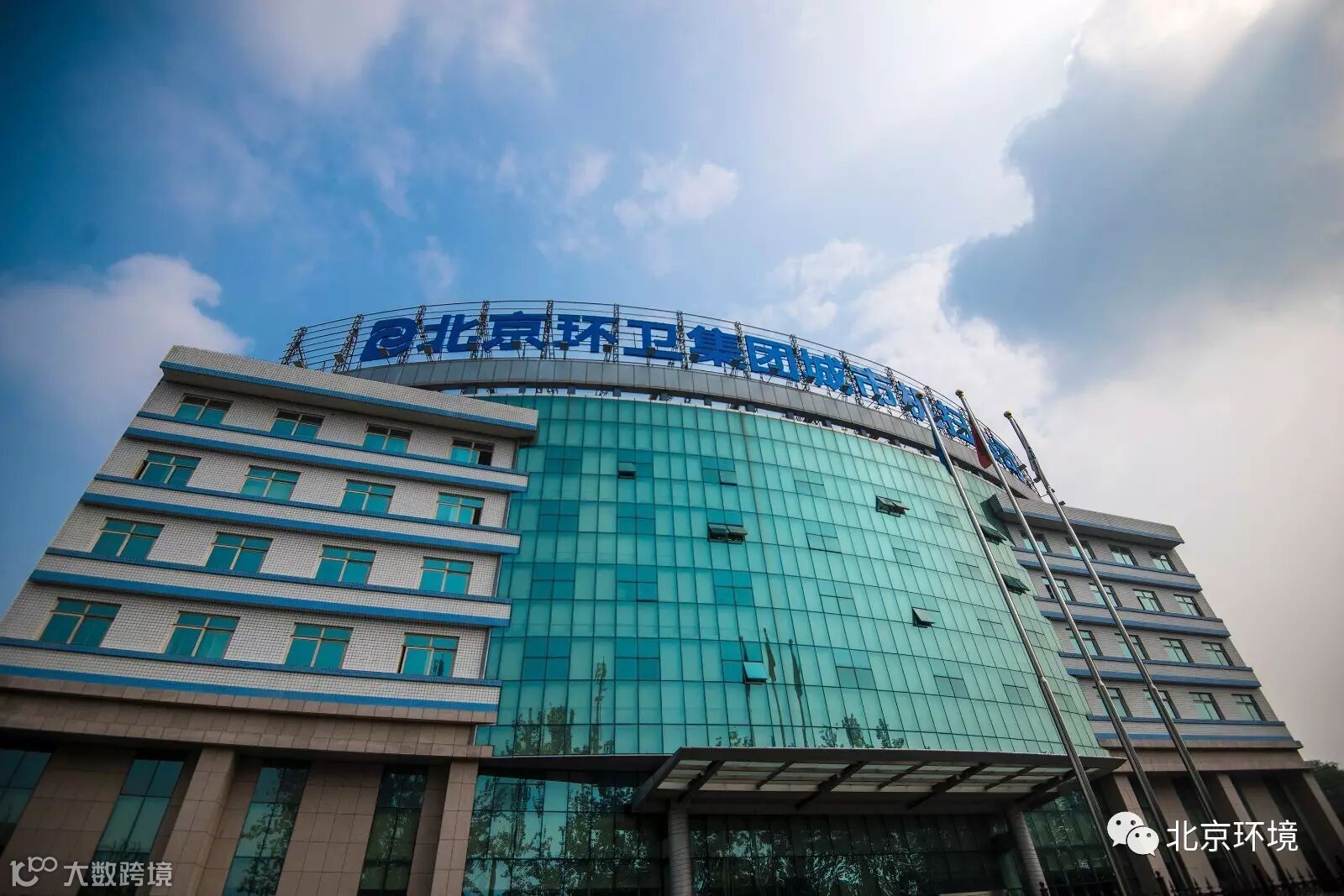 仰拍的北京机扫办公楼,在蓝天的映衬下更显高大壮观。